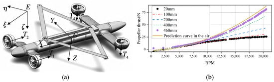 where TINPUT is the required thrust and TOUTPUT is the real thrust produced by the vehicle. Furthermore, α is a coefficient which is determined by controlling a small quadrotor to hover above the water surface at different rotor heights, as shown in Figure 20.