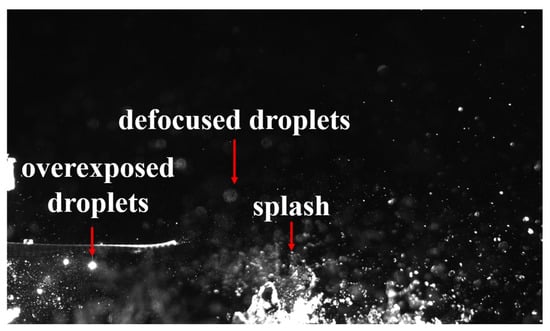 Furthermore, high-speed photography results have demonstrated that the rotor wake caused water surface deformation, droplet tearing, splashing, and entrainment into the rotor disk. Two distinct tearing-off mechanisms were revealed in this study: (1) interfacial instability at the water–air boundary induced by Kelvin–Helmholtz instability in water surface jet flow, as shown in Figure 17, and (2) direct droplet ejection caused by momentum transfer between the water surface and rotor downwash [48]. These mechanisms provide critical insights for comparative analysis of droplet formation patterns between large helicopters and small CMVs. Notably, despite the larger rotor dimensions and higher downwash velocities characteristic of conventional helicopters, CMVs typically operate at significantly reduced altitudes above water surfaces. This operational proximity, coupled with the enhanced momentum interaction between rotors and the water interface at equivalent dimensionless rotor heights, results in the generation of more complex droplet fields during CMV operations.