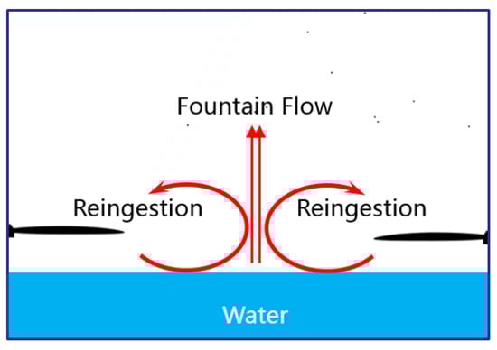 (a) Schematic of near–water effect; (b) mixed air–water flows induced by rotor [17].
