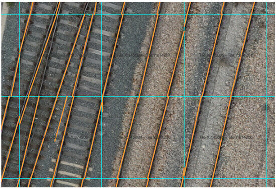 Model training was required prior to using the tool. The model was trained using a total of 3872 aerial images with an approximate GSD of 1 cm and a resolution of 640 × 640 px. The rails and railways were manually delineated for each image using Roboflow [28], obtaining approximately 24,000 instances of rail and 12,000 instances of railways (Figure 3).