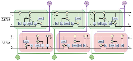 BiLSTM (bidirectional LSTM) networks, as shown in Figure 6, extend the LSTM architecture by processing the input sequence in both forward and reverse directions. The hidden states from the forward and backward LSTM layers are concatenated to form the final hidden state