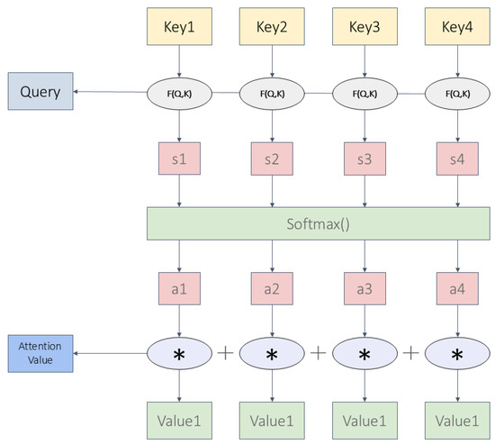 The attention mechanism, shown in Figure 7, enables the model to dynamically focus on specific parts of an input sequence, particularly useful for tasks where input relevance varies. The attention mechanism operates by computing the similarity between queries (Q) and keys (K), followed by applying a softmax function to generate attention weights. The formulation is as follows: