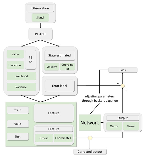 - Enhanced localization accuracy through the integration of direct signals and comprehensive feature extraction: The proposed method utilizes both raw measurements and derived features from particle filtering. The system integrates normalized likelihood computation and peak detection analysis to enhance system robustness in adverse conditions. For detailed explanations, see Section 5.1.