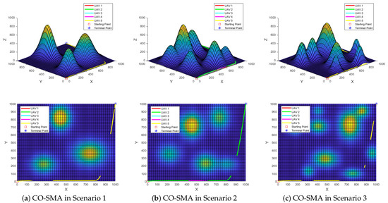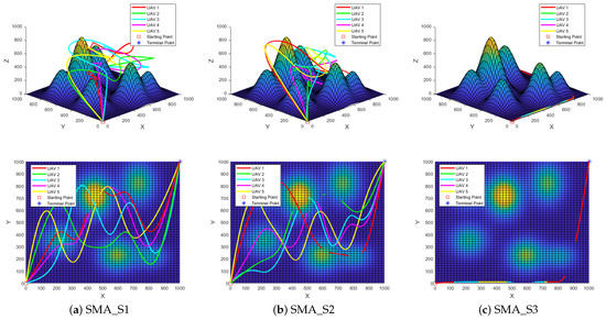 These fruitful research achievements have demonstrated the superior performance of SMA in addressing multi-UAV path-planning problems. Nevertheless, SMA exhibits inherent limitations, including improper exploration–exploitation balance, premature convergence, and insufficient mechanisms for escaping local optima. These shortcomings significantly restrict the flexibility and adaptability of SMA, impairing its optimization efficacy in complex multi-UAV path-planning scenarios.