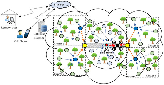 The network model of WSN-based smart irrigation using the proposed scheme.