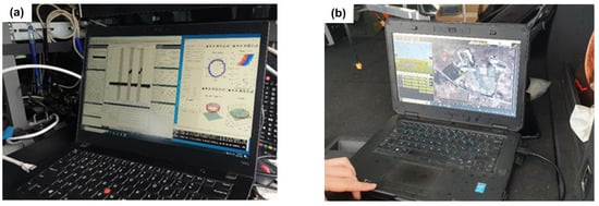 In all cases, two computers were used for flight and measurement equipment control and management: one for controlling and managing the aircraft’s flight and the other for controlling and managing the measurement equipment, as shown in Figure 7: