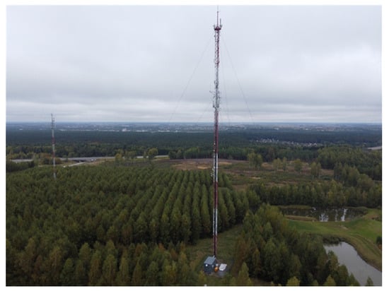 This article contains the data of the experimental measurements, where the measurements were carried out both with a winged and fixed-wing aircraft. The Ukmergė city (Lithuania) television broadcasting tower (Figure 8) was selected for the experiment, as one of the towers whose real antenna diagram is of interest to the Communications Regulatory Service in Lithuania.
