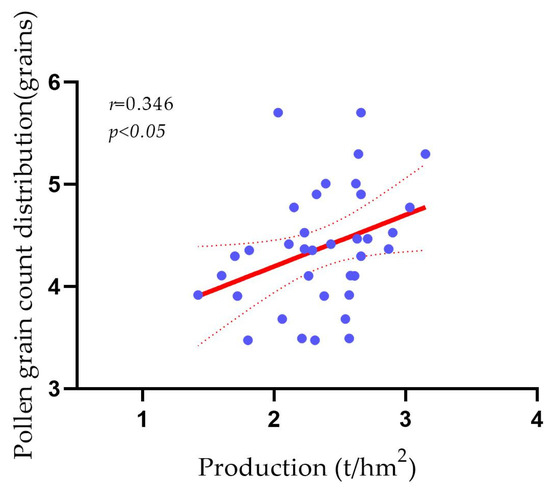 Correlation analysis between pollen distribution density and yield.