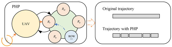 The subsequent sections of this paper are structured as follows: Section 2 outlines the problem, encompassing the six-degrees-of-freedom UAV dynamics model and the creation of situational awareness vectors. Section 3 details the PHP-ROW method, delineating the design of the deep reinforcement learning-based maneuver control algorithm. Section 4 elucidates the entire process and methodologies of beyond-visual-range UAV aerial games, spanning situational awareness, maneuver decision-making, and precise control. Section 5 curates waypoint navigation tasks and human–machine BVR game scenarios, executing experiments and evaluating outcomes. Section 6 concludes the paper, broaching potential avenues for future exploration.