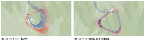 Finally, we conducted a PE problem, and the results revealed that the model employing the PHP-ROW algorithm (blue aircraft) is capable of tracking the target (red aircraft) inside the triangle with a larger turning radius, as illustrated in Figure 10.