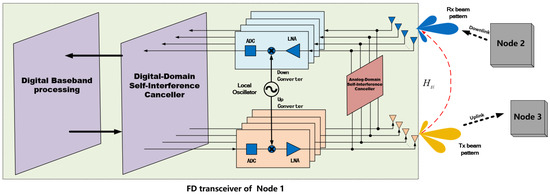 - Wang, Y.; Zhao, J.; Xia, X.; Ni, X. A Joint Design of Hybrid Beamforming and Multi-Tap Cancellation for Full-Duplex mmWave MIMO Systems. In Proceedings of the 2024 16th International Conference on Wireless Communications and Signal Processing (WCSP), Hefei, China, 24–26 October 2024; pp. 223–228. [Google Scholar] [CrossRef]