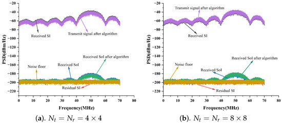 - Kim, S.M.; Lim, Y.G.; Dai, L.; Chae, C.B. Performance Analysis of Self-Interference Cancellation in Full-Duplex Massive MIMO Systems: Subtraction Versus Spatial Suppression. IEEE Trans. Wireless Commun. 2023, 22, 642–657. [Google Scholar] [CrossRef]