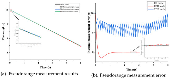 - The simulation analyses demonstrate that the proposed joint TX-RX beamforming algorithm can effectively suppress up to 140 dB of SI with a limited number of antennas, and it can obtain high-precision measurements in UAV networks without affecting the accuracy of TT&C signals. Compared with that of the traditional FDD mode, the measurement accuracy is not decreased, and compared with those of the TDD mode, the distance and speed measurement accuracies of the UAVs are increased by 10 m and 1.5 m/s, respectively, in FD mode because there is no interruption of the tracking loop and no continuous retracking in FD mode. Futhermore, the proposed algorithm has good dynamic performance.