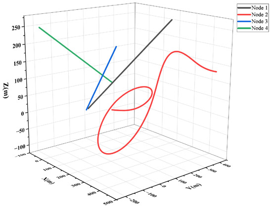 | Node 4 | [50, 150, 70] | [−1, −4, 2] | [0, 0, 0] | uniform motion |