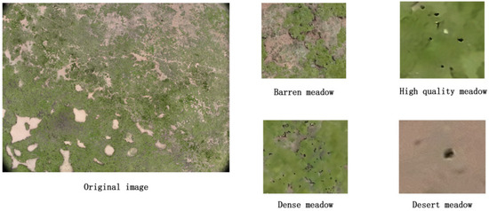 From July to August 2024, photogrammetric surveys were conducted using a DJI Mavic 3 (DJI, Shenzhen, China) UAV equipped with a Hasselblad L2D-20c RGB camera (4/3” CMOS, 20 MP, mechanical shutter), flown at 150–200 m AGL along grid-based paths with 70% forward and lateral overlap. Flights were scheduled during peak pika activity (09:00–12:00 and 16:00 local time) to maximize burrow visibility. A total of 500 georeferenced images were captured, with a horizontal accuracy of ≤15 cm ensured through RTK–GNSS-measured GCPs distributed across the area. Seasonal variations were considered, as July featured higher solar angles and drier conditions, while August showed increased cloud cover and moisture variability. The imagery was processed via Pix4Dmapper’s Structure-from-Motion pipeline to generate high-resolution Ortho mosaics (Figure 2 and Figure 3). For small-burrow detection, images were tiled into 64 × 64 px patches using a sliding window (stride = 128 px), then resized to 416 × 416 px via Lanczos interpolation for YOLOv11 input. Elevation data for each sampling plot were recorded using a Trimble R12 GNSS receiver (vertical accuracy ≤ 5 cm). The model’s robustness to elevation variations was inherently validated through the diversity of training data across altitudes (4680–5711 m). The resulting PPCave2025 dataset included 1000 manually annotated burrows (YOLO format), stratified by habitat and split into training (800), validation (145), and test (145) sets. Data augmentation involved geometric (±30° rotation, flipping) and photometric (±20% brightness, ±15% contrast, ±10% saturation, Gaussian noise σ = 0.01) transformations to enhance model robustness.