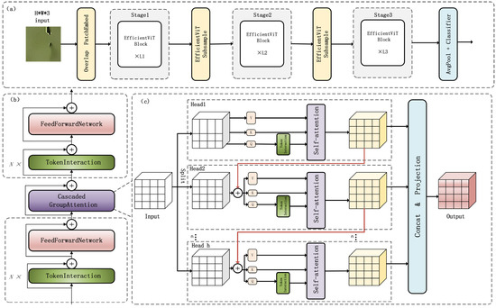 EfficientViT is an efficient, lightweight vision Transformer architecture specifically designed for resource-constrained edge computing scenarios, with its structure illustrated in Figure 6. The M0 variant of EfficientViT is adopted for this study. Its core innovation lies in a multi-stage optimization strategy, which significantly reduces computational costs while preserving global feature modeling capabilities [17].