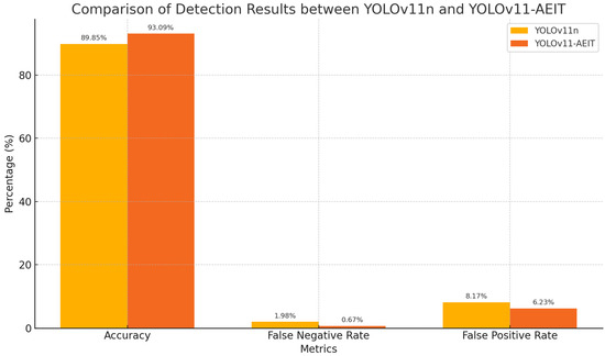 Comparison of detection results between YOLOv11n and YOLOv11-AEIT.