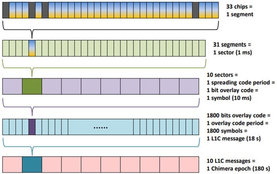 SCA enhances security through pseudo-range-domain spoofing resistance, leveraging unpredictable code-phase alterations in the power domain. The CHIMERA signal exemplifies this through its TMBOC (Time-Multiplexed Binary Offset Carrier) modulation scheme, which partitions 1ms intervals into 31 segments containing 33 chips each, as shown in Figure 7. Dynamic authentication replaces 29 BOC(1,1) chips per segment while preserving 4 BOC(6,1) pilot chips, coupled with dual-channel authentication—fast (1 ms) for real-time validation and slow (3–6 s) for key synchronization.