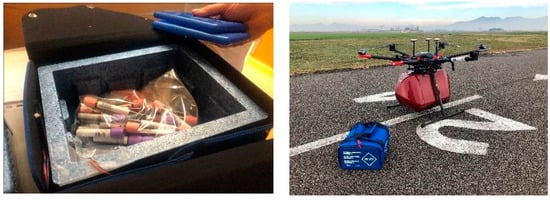 - Niglio, F.; Comite, P.; Cannas, A.; Pirri, A.; Tortora, G. Preliminary Clinical Validation of a Drone-Based Delivery System in Urban Scenarios Using a Smart Capsule for Blood. Drones 2022, 6, 195. [Google Scholar] [CrossRef]