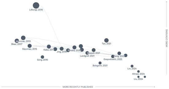 Literature map generated using LitMaps, illustrating the chronological development, relationships, and citation impacts of key studies in UAV viewpoint planning.