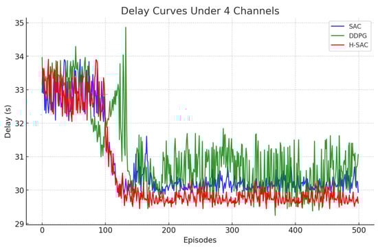 With , all methods converge to comparable latency levels, with H-SAC maintaining a slight edge. When , H-SAC substantially outperforms the baselines, achieving significantly lower average latency due to improved resource utilization and conflict avoidance.