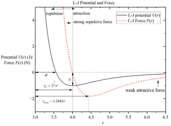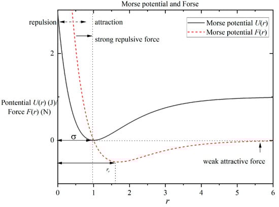 25]. In a molecular system, molecules experience a variety of interatomic forces, such as van der Waals forces and Coulomb forces, which collectively dictate molecular acceleration. Given the initial positions and velocities of molecules, their subsequent positions, velocities, and accelerations over time can be computed incrementally. This concept aligns with the operational principles of UAV swarm. Potential functions describe the correlation between the intermolecular forces and the distances separating them. Common potential function models include the Lennard-Jones potential [