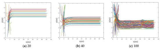 Figure 8 shows the flight trajectories of the UAV swarm of different sizes. The UAV swarm size is directly proportional to the convergence speed of UAVs, but there is a problem of large dependence on the initial value.