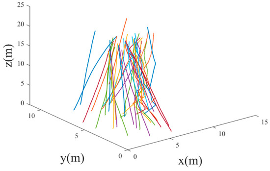 Figure 11 presents the trajectory profiles of the UAV swarm, visualizing its spatiotemporal movement patterns in the three-dimensional domain. Experimental validation confirms that the proposed method effectively achieves consistency control in three-dimensional space.