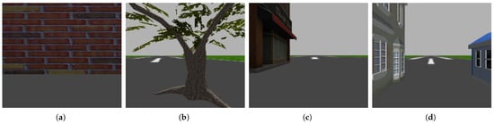 Many image datasets have been created and labeled for use in controlling a drone’s path or detecting obstacles. However, current methods rely on deep neural networks and deep reinforcement learning to generate action for two-dimensional movement, and they do not fully utilize the capabilities of UAVs to move in three dimensions (X, Y, and Z) [12]. The reason for this is that the current databases contain data that were captured inside buildings [13], captured on the road to detect obstacles [14], or obtained primarily to train cars for object detection while driving [15]. Therefore, as far as we know, there are currently no databases for training drones to increase their altitude, fly over obstacles, and navigate in a 3D environment. Simulated synthetic datasets are a good alternative for the development of new models in rare, dangerous, or unreachable environments due to their ease of use and cost-effectiveness [16,17]. Synthetic datasets represent a promising solution for deep learning, which requires large amounts of data to learn; they will, in turn, help in developing robots and preparing for everyday applications [18]. Numerous studies have demonstrated the effectiveness of synthetic images in training robots and UAVs and their generalization in the real world. One study showed that a robot trained to detect objects from a simulated image achieved high accuracy in the real world [19]. A simulation environment was used to train a UAV to avoid collisions, and real-world experiments proved the effectiveness of this simulation environment [20]. The results of the study on UAV detection demonstrated that UAVs trained on synthetic data outperformed those trained on real data, particularly in scenes with high-intensity light and distant objects [18].