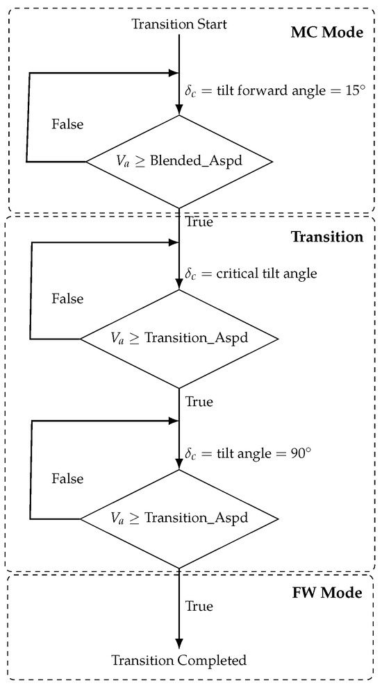 This logic, as shown in Figure 2, lacks responsiveness to rapid dynamic changes, such as sudden shifts in aerodynamic forces due to rotor tilt, leading to pitch instability and altitude loss during transition [14,15].