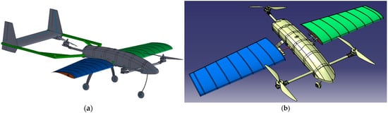 (a) Conventional fixed-wing UAV. (b) Morphed wing sweep assembly UAV.