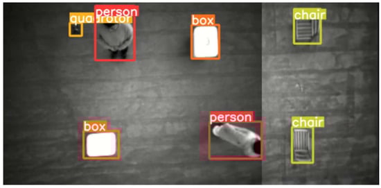 Furthermore, the trained YOLOv5 network accurately detected obstacles such as pedestrians, chairs, and storage bins within the composite panoramic images. The detector produced precise pixel-level bounding box coordinates and size estimates for each object, thus supplying reliable prior data for subsequent 3D environmental modeling.