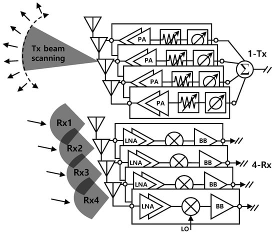 2.2. The 24 GHz 4Tx–4Rx CMOS Radar IC Configuration