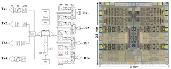 Figure 3. The 4Tx–4Rx CMOS IC of the proposed radar.