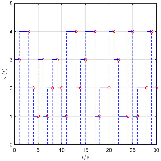 According to Lemma 2, there is for all . Based on Lemma 3, one can obtain that for all , which implies that is time-invariant and when . Subsequently, construct a Lyapunov function . The time derivative of can be obtained as