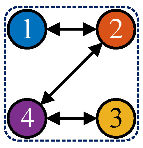 According to Lemma 2, PDO (17) can guarantee that for all and . Therefore, for , when , one derives that in virtue of (11) and (26). Due to , one obtains that . Once , there is and, in turn, , which means that holds for all . Similarly, once , there is and, in turn, , which means that holds for all . Consequently, it can be inferred that for all . Given the update strategy of DCHO (25), it follows that is monotonically increasing and upper bounded by and that is monotonically decreasing and lower bounded by . Thus, there are and . Moreover, according to the definition of joint strongly connected topologies, both and converge to their consensus values within the time once , i.e., . □