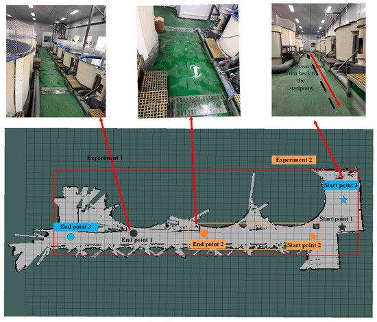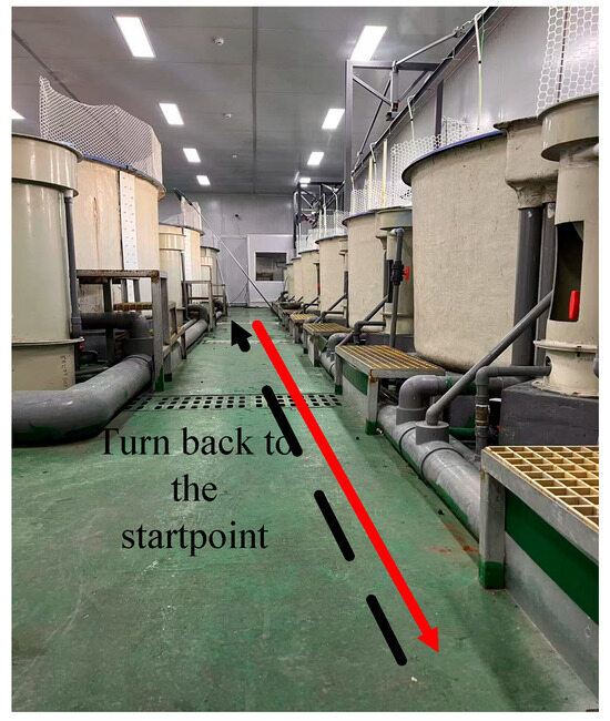 To validate the efficacy and practicality of the proposed algorithms in real-world applications, extensive experiments were conducted using an AGV within a controlled aquaculture setting. The experimental setup, situated at the RAS facility of Huazhong Agricultural University, was specifically designed to simulate realistic operational conditions, as illustrated in Figure 2.