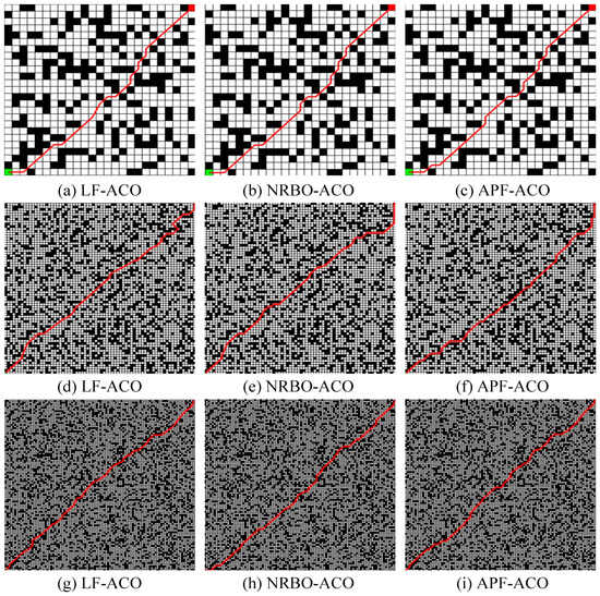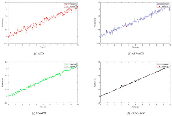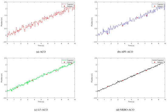 To address these limitations, metaheuristic algorithms, such as particle swarm optimisation (PSO) [20] and ant colony optimisation (ACO) [20,21], have gained prominence. ACO is particularly effective in navigating complex environments with multiple obstacles and irregular layouts, utilising pheromone-based communication to iteratively refine path solutions. However, variants including layered potential field (LF)-ACO[22] and artificial potential field (APF)-ACO [23] encounter difficulties in parameter tuning, often leading to suboptimal paths due to excessive avoidance or inadequate obstacle clearance.