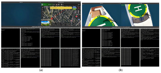 Program control interface: (a) UAV flight process and (b) UAV landing.
