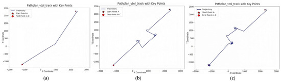 This study sets up comparison experiments of three paths to ensure the accurate acquisition of flight trajectory and flight distance data. Each path experiment was repeated 20 times to eliminate accidental errors, and the average value was taken as the final result. The data is shown in Table 2 and Figure 7.