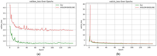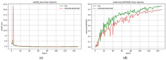 The weighting factors were used to balance the contributions of classification, bounding-box regression, and segmentation losses during training. We adopted default values commonly recommended by the literature to ensure fair and reproducible comparisons with prior work. These weights were empirically calibrated to maintain stable training dynamics and prevent any task from dominating the optimization process. Specifically, we used for classification loss (BCE), = 7.5 for bounding-box regression (Shape-Wise IoU), = 1.5 for Distribution Focal Loss (DFL), = 8.0 for Tversky Loss, and = 24.0 for Focal Loss.