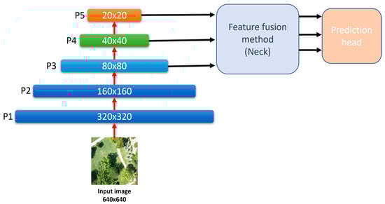 18]. Considering an input resolution of 640 × 640, the resolution of the fourth feature level