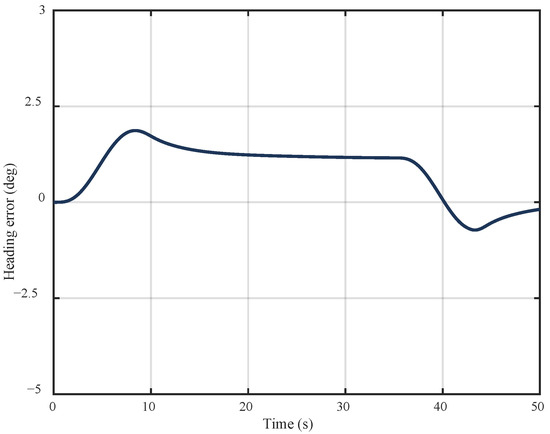 Figure 15 further analyzes the heading error during this maneuver. The error is defined as the angular difference between the actual yaw angle and the desired yaw angle, which is determined based on the direction from the current aircraft position to the center of the circular path. The results show that the heading error remains within 10°, fully satisfying the desired performance criterion specified in Table 5. This demonstrates that the aircraft maintains a consistent orientation toward the center of the circle throughout the maneuver.