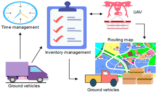 The exponential growth of e-commerce and the increasing demand for rapid and reliable delivery services have significantly reshaped the urban logistics landscape [1,2]. However, conventional logistics methods are facing mounting challenges in meeting the heightened expectations for speed, efficiency, and sustainability [2]. In response, the integration of advanced technologies—such as unmanned aerial vehicles (UAVs), commonly known as drones—with traditional ground-based logistics systems has emerged as a promising solution to enhance delivery performance and reduce operational costs [3]. This hybrid delivery paradigm leverages the complementary strengths of logistics vehicles and drones, offering a novel approach to address critical urban logistics issues, including traffic congestion, last-mile delivery inefficiencies, and environmental impact [4]. The concept of drone-assisted last-mile delivery has gained substantial traction in recent years, with various studies demonstrating its potential to reduce both delivery time and costs [4,5]. Nevertheless, the standalone deployment of drones presents limitations, such as restricted payload capacity, limited flight range, and regulatory constraints. To overcome these challenges, the integration of drones with ground logistics platforms—including electric vehicles (EVs), light-duty trucks, and micro-mobility solutions—has been proposed as a viable alternative [5].