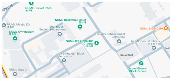 An illustration of the actual road network around NUML University, Islamabad, Pakistan.