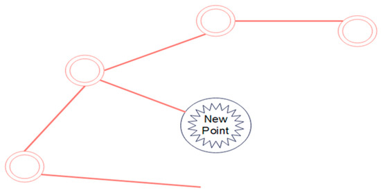 | Input: Boundary limit parameters. Output: Intersection point set, road network information matrix. 1: Select the baseline, set the upper and lower boundaries and the left and right boundaries, and set the road level. 2: Randomly select several points with the right expansion set V = [1] and the edge set E = [1]. 3: Process the points in a cluster. 4: If the current point is n, the coordinates () are not processed; the nearest point above this point is (), the nearest subpoint is (), the upper critical point is (), and the lower boundary is (). According to the slope relationship between the upper and lower points and the processing points and the limit of the upper and lower boundary points, a new point is randomly generated: (), num + +. V = V ∪ point. 5: If this condition is not met, exit the current recursion. 6: Randomly generate a road congestion degree coefficient u, connect the new point and (), and generate a new side e: (n, num, path length ). distance[n][point] ←. E ← Eue. 7: If the new point () exceeds the boundary, exit the current recursion. 8: If not, add the new point to the point set, and return to step 3. |