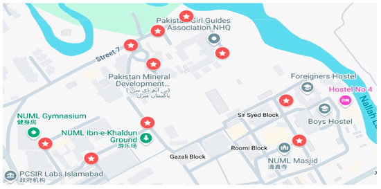 Figure 7 illustrates the spatial distribution of delivery points in the vicinity of NUML University, Islamabad, Pakistan, serving as a representative urban case.