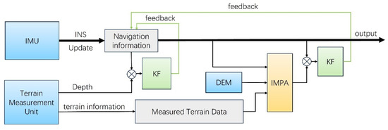 Terrain-Aided Navigation (TAN) is an autonomous navigation method with no cumulative error that can effectively solve the underwater navigation problems faced by AUVs. TAN technology corrects the INS trajectory during navigation based on the measured terrain information to achieve accurate vehicle positioning. TAN can be divided into Terrain Matching Navigation (TMN) and the Simultaneous Localization and Mapping (SLAM) algorithms according to whether a prior terrain map is required [9]. The SLAM algorithm can realize navigation and localization without a prior map. In contrast, the TMN algorithm can achieve navigation by comparing the measured terrain information with the terrain information from a prior terrain map to correct the INS data. Filter-based methods and correlation-based batch processing methods are the two most classic categories of TMN algorithm. In recent years, a series of emerging terrain matching methods based on deep learning technologies have also been developed [10,11].