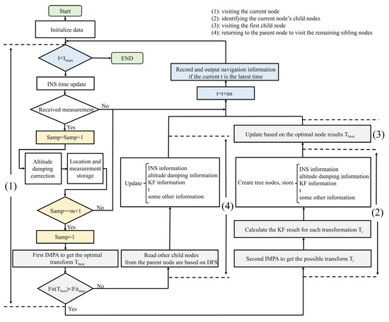 (2) IMPA-TAN can maintain stable navigation performance in most scenarios. The robust tree framework corrects occasional navigation divergence, further enhancing the framework’s navigational stability. The single matching time of the DFS-IMPA-TAN algorithm is significantly shorter than the matching cycle, ensuring continuous operation during mission execution.