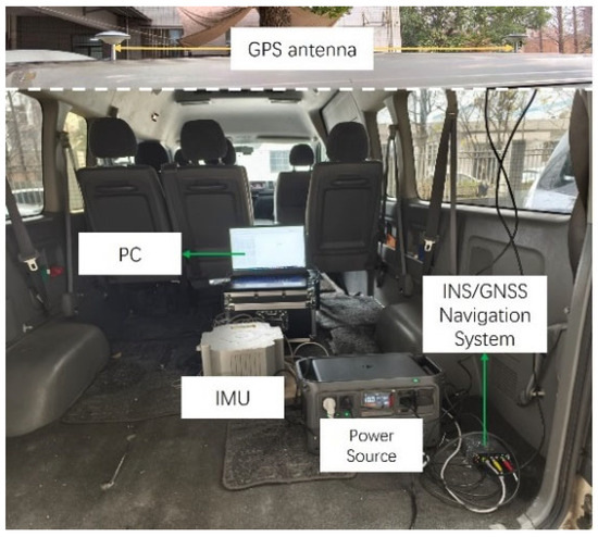 To further validate the framework’s effectiveness in a real terrain environment, in-vehicle experiments were conducted, as shown in Figure 15, at Heimifeng Mountain in Changsha, China. The experiment utilized a high-precision INS/GNSS Navigation System to provide accurate height measurements for TAN and position information used to compare the final navigation results. The parameters of the equipment in the experiment are shown in Table 6.